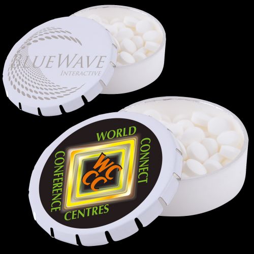 Everyone loves a mint and let's face it some it doesn't hurt to "freshen up" after lunch or before a big meeting. Well now you can order promotional mints with your company logo branding. We offer various package styles all of which are designed to accept your company branding or emblem. We have twister packs, metal tins, clicker cases and all sorts of other clever dispensing options for these branded mints. Ask us today for a rapid written quote and a free design proof prior to finalising your order.
